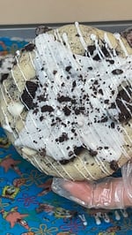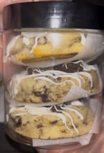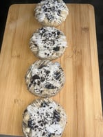 A delicious cookie with white chocolate chips and semi-sweet chocolate chips, with Hershey’s cookies & cream cookies. Also with white chocolate drizzled on top.
