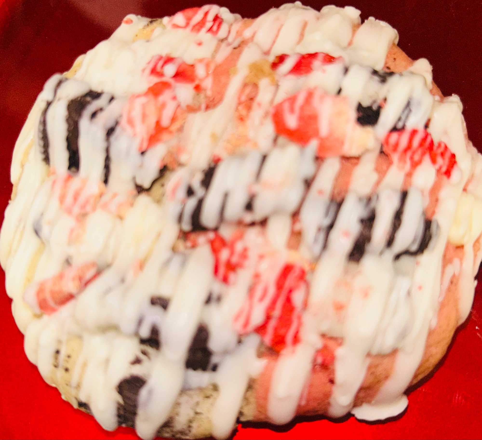 These Cookies are so moist and delicious! Half the cookie is cookies n cream topped with white chocolate, Oreo cookies and freeze dies strawberries. The other half is a strawberry cookies topped with white chocolate, Oreos and freeze dried strawberries. This cookie gives the best of 2 worlds!